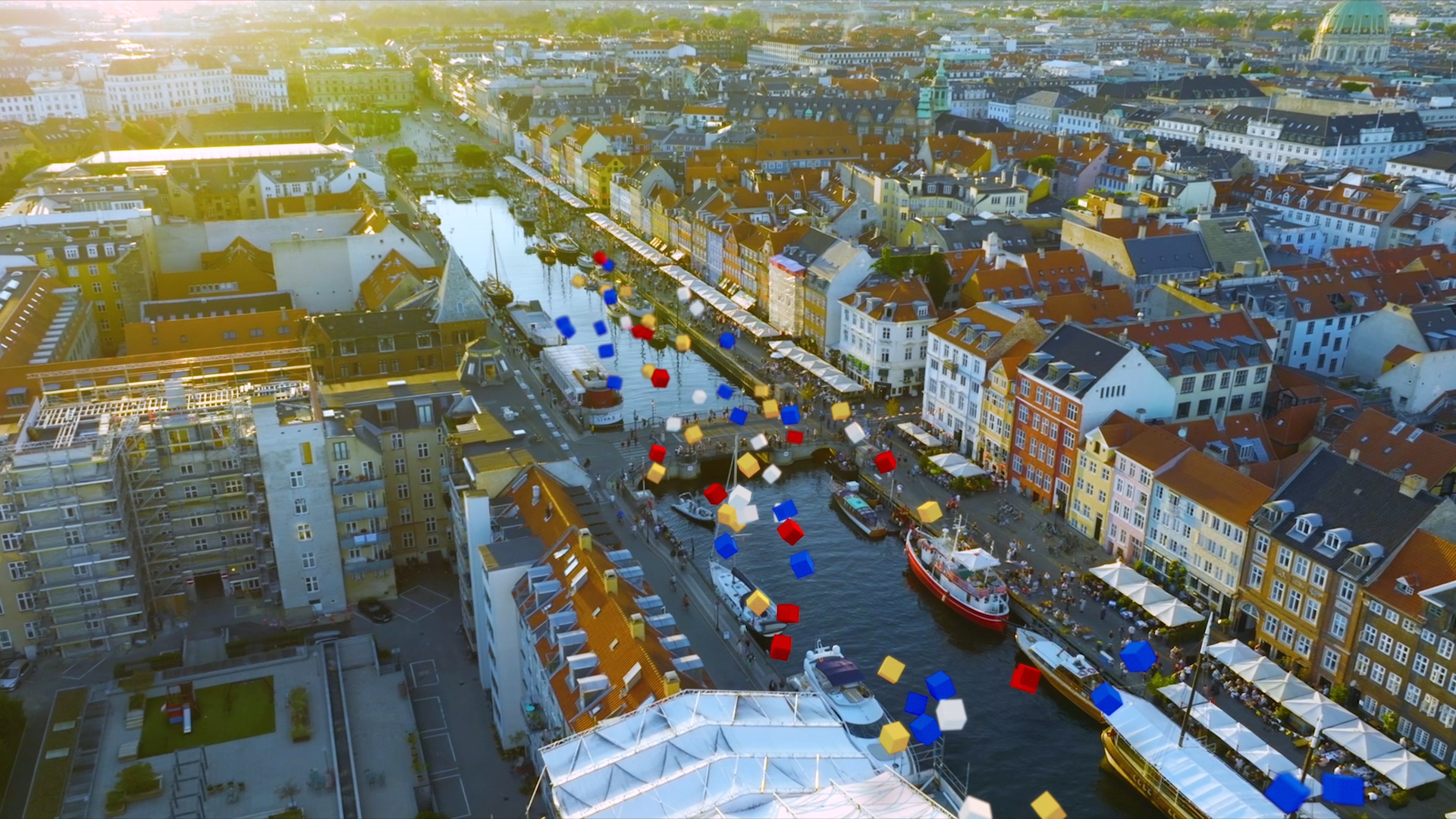 For this video we developed the creative ideas, which saw a stream of cubes flying over the streets and rivers of Copenhagen, building in number as the film progressed. These cubes represented the event delegates, all coming together and joining in the Danish capital. Once the cubes landed in the main square all the following footage was housed in the cubes and we created a 3D cube transition between the scenes.